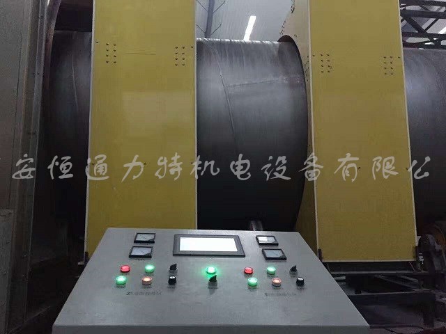 本实用新型属于防腐管道制造设备领域,特别涉及一种直通式中频加热输送装置,其特征在于:由轨道,轨道小 车,半圈式中频加热炉组成,轨道固装于地面并穿过半圈式中频加热炉下方且连接于喷涂室,轨道小车滚动安放在轨道上,半圈式中频加热炉固装于轨道上方.本直 通式中频加热输送装置结构设计科学合理,无需多车倒换,由单车直接运送加热和喷涂,具有可避免钢管漏转,避免管体整体滑过自转轮,有效提高产品质量和合格 率等优点,是一种具有较高创新性的直通式中频加热输送装置.